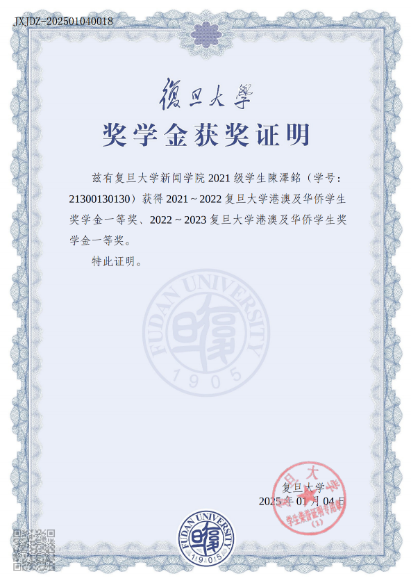 本科奖学金证明